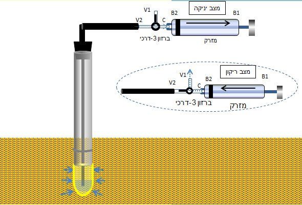 Presionando la jeringa (tire hacia atrás) al punto 1B para crear un vacío inicial,